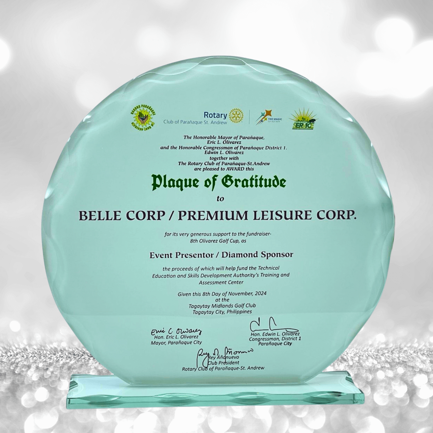 Clear Glass Base, with Engraved