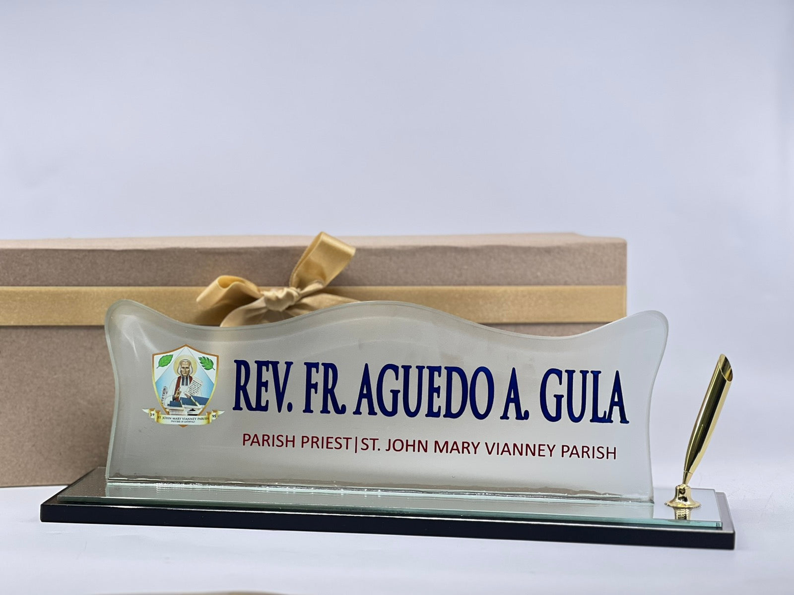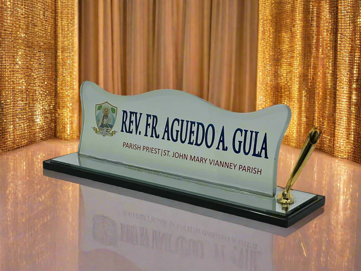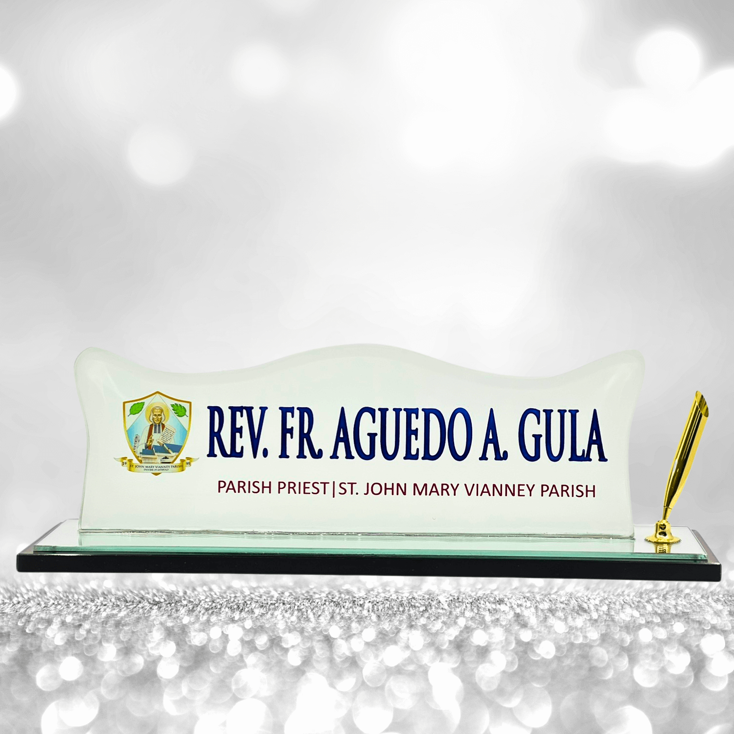 3/8” Thick Frosted Glass Table Sign with Pen Holder On The Side