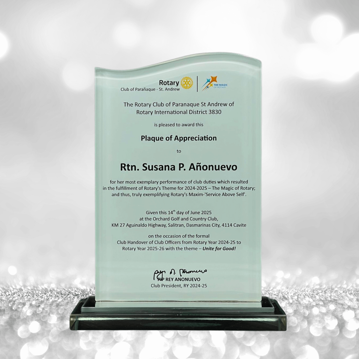 Plaque Mounted On 3/8” Thick