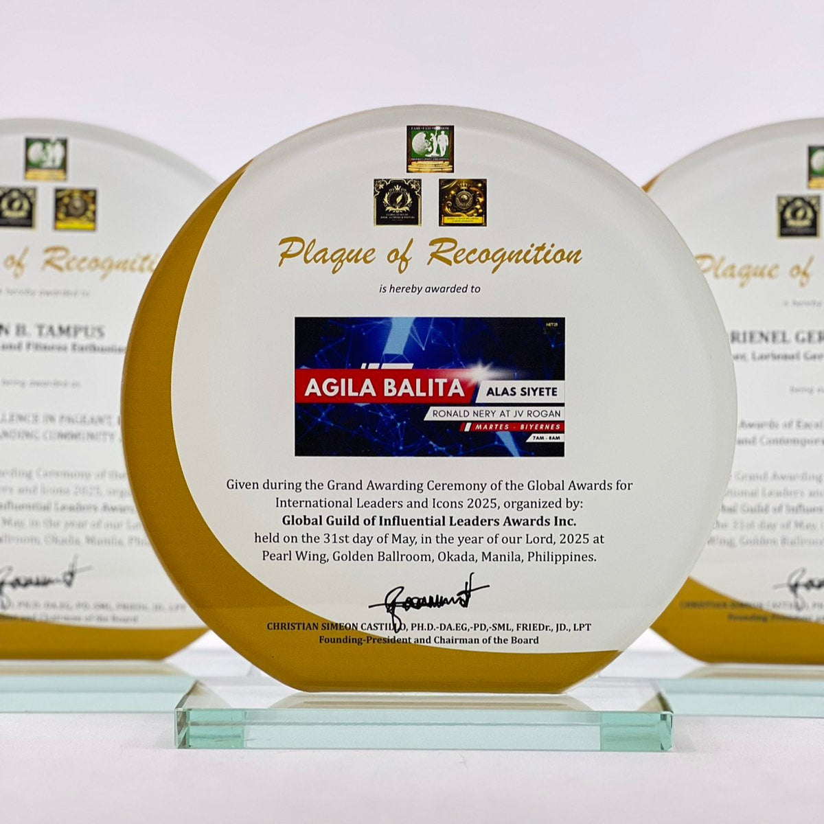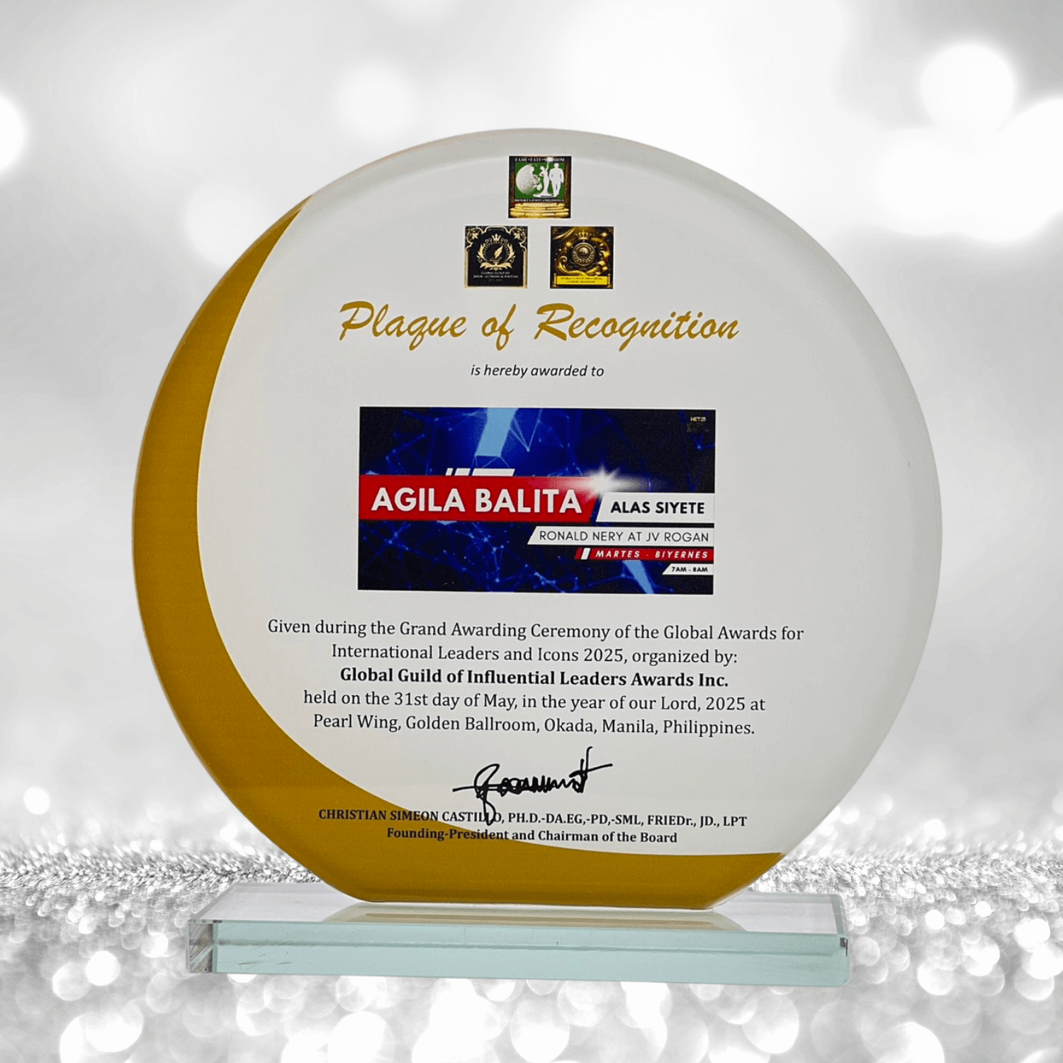 Round Shape Glass Plaque Mounted On