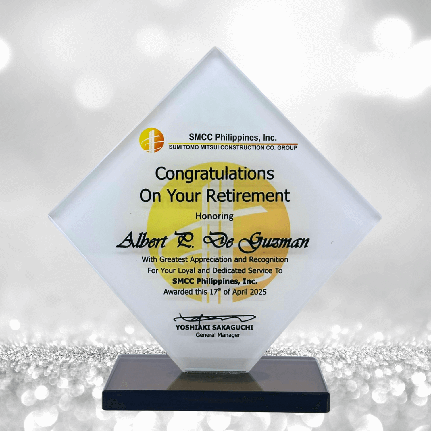 Diamond Shape Glass Plaque